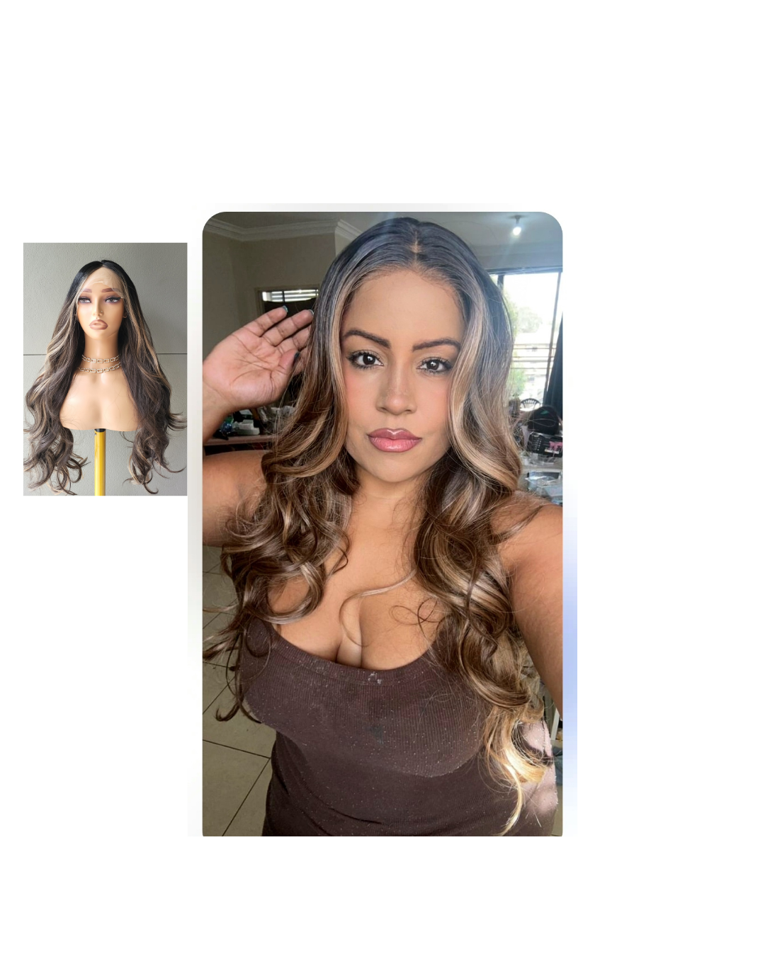 Nina Brown with highlights Synthetic lace front wig- Regular price